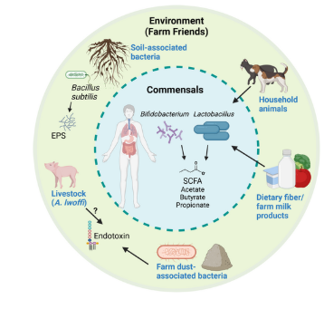 Esse artigo se trata de uma revisão da literatura sobre os efeitos protetores do meio rural na asma e alergias. Descreve importantes achados da literatura de como o meio ambiente rural pode modular a microbiota e consequentemente o sistema imunológico.